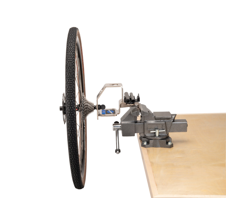 Ya no es necesario sujetar las ruedas entre las rodillas, apoyarlas en el banco ni pedir ayuda. El soporte para ruedas de bicicleta WH-1 sujeta firmemente ruedas de eje pasante, de liberación rápida y de eje sólido en tres cómodas posiciones para un acceso rápido y sencillo a toda la rueda. Es como tener dos manos extra para sujetar la rueda y así poder concentrarse en diversas tareas relacionadas con las ruedas, como la configuración de sistemas tubeless, el cambio de cubiertas y cámaras, el ajuste del buje, el trabajo con el cassette y mucho más.